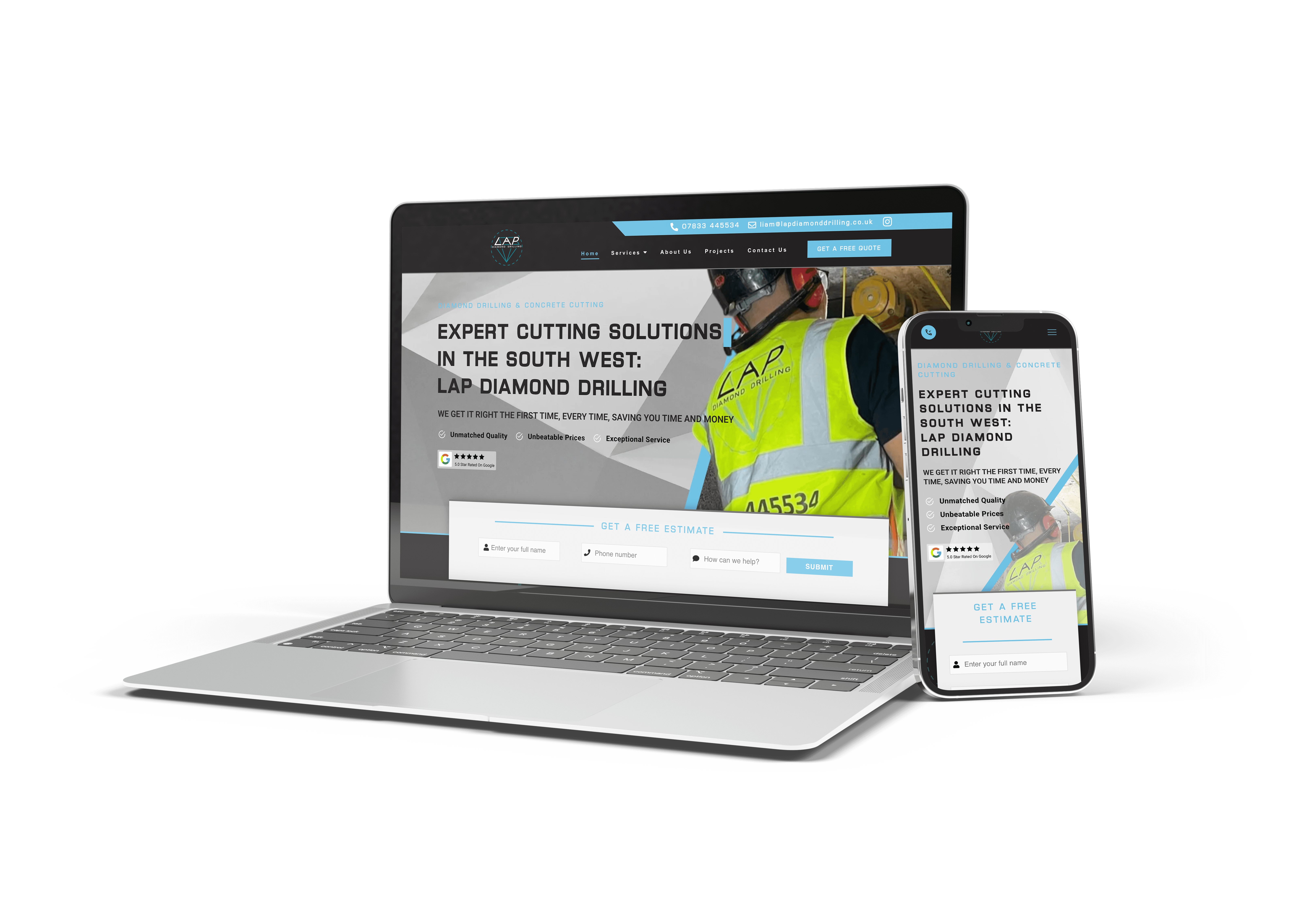 LAP Diamond Drilling offers specialist diamond drilling, concrete cutting, chasing, and core-hole services for plumbing, electrical, HVAC and structural work across Bristol, Bath, Swindon, Gloucester, Cheltenham and other South West England areas. They needed a professional, no-nonsense website that clearly showcases their services, technical capabilities, and service areas — helping contractors, tradesmen and project managers quickly understand what LAP can deliver and reach out without fuss.